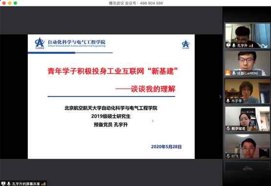 结合《2020年国务院政府工作报告》提出的“千方百计稳定和扩大就业”精神,437ccm必赢国际官方网站系统仿真与智慧制造系党支部与系内25名研究生进行了在线研讨。孔宇升同学作为预备党员,同时作为上述两会特别节目的青年学生代表,以《青年学子积极投身工业互联网“新基建”》为主题发表了见解,提出根据两会会议精神,作为青年学子应立足北航特色、顺应国家战略发展需求,力争在其所从事的工业互联网研究方向做出创新性贡献,成为国家未来需要的栋梁之才。
